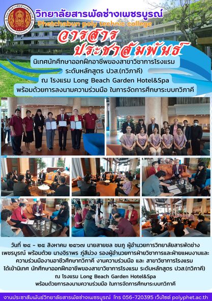วันที่ ๒๑ สิงหาคม ๒๕๖๗ นายสายชล ชมภู ผู้อำนวยการวิทยาลัยสารพัดช่างเพชรบูรณ์